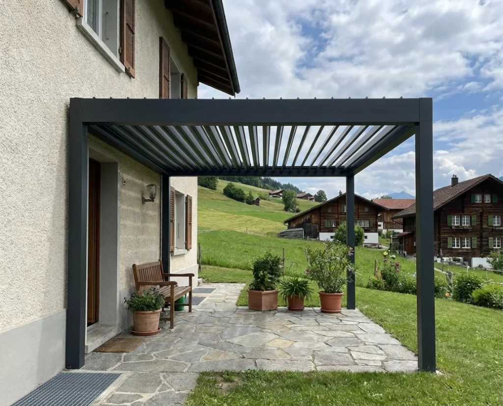 Plus votre terrasse est grande, plus le prix augmente. Une pergola de 12 m² coûte naturellement moins cher qu’un modèle de 20 m². Les dimensions influencent la quantité de matériaux nécessaires, le nombre de lames orientables et la complexité de la structure porteuse. Chaque mètre carré supplémentaire ajoute entre 500 et 800 CHF au budget de base.